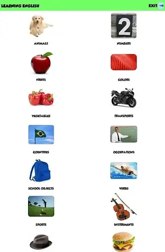 Çocuklar için İngilizce uygulamasının Bölümleri