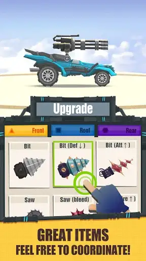 • Upgrade – Level up your weapons and cars so that you will be able to knock down the opponents!