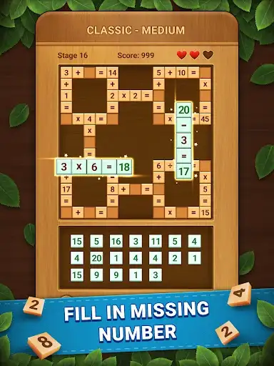 Cross Number: Math Game Puzzle is not just about solving equations - it's where numbers meet wooden charm! Join in a journey that challenges your logical thinking and numerical prowess.