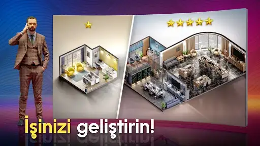 Oyunda, çalışanlarınız için ofislere de erişebileceksiniz. Tasarımcılar, programcılar ve mühendisler için 16'dan fazla ofis satın alın ve geliştirin!
