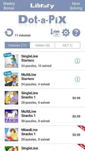 For more fun, Dot-a-Pix includes a Weekly Bonus section providing an extra free puzzle each week.