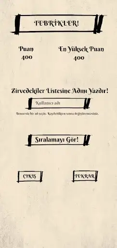 Oyun sonunda kullanıcı adını girip puanını liderlik listesinde görebilir ve diğer hayranlarla rekabet edebilirsin.