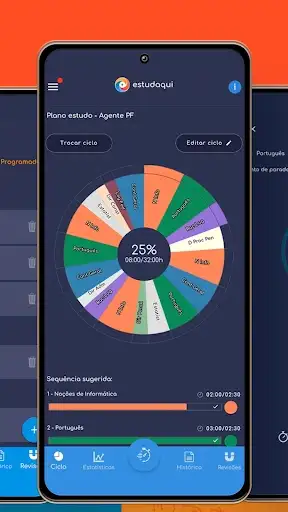 O usuário pode escolher o plano de estudo nos formatos de Ciclo de Estudo ou também Agenda semanal de estudo.