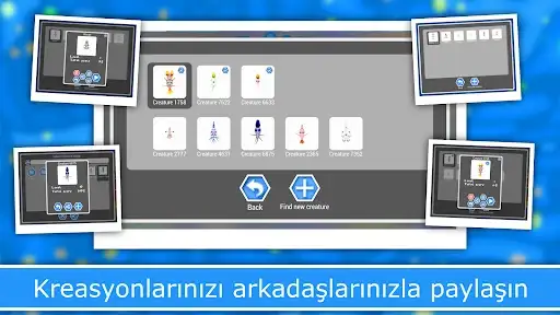 - Yaratıklarınızı arkadaşlarınızla paylaşın ve yaratımlarını oyununuza ekleyin. En sıra dışı yaşam formunu bulun!