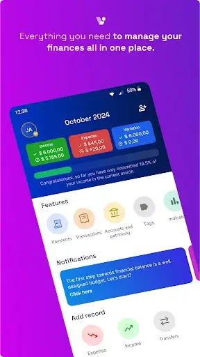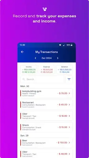 Organize your finances your way! Create personalized tags for your expenses, income and transfers, and have full control of your expenses quickly and conveniently.
