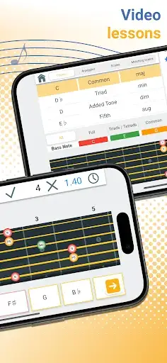 - Follow your progress by viewing your fretboard heat-map. Each fret has its own statistics.