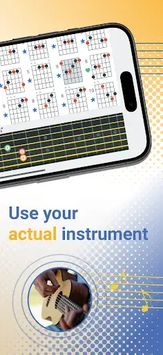 Choose your instrument and pick one of the many games available to you to practice the fretboard until you have mastered every fret and every chord pattern.