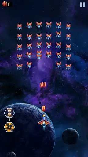 + Shoot and destroy: Navigate through different galaxies and destroy waves of alien enemies, including challenging bosses. Use your powerful weapons and shields to survive.