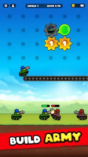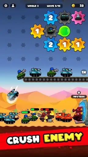 Merge gears to boost production and upgrade your war machine. Tanks shoot automatically, engaging in epic battles against enemy forces. Build the ultimate gear factory to unleash an endless army of tanks and fight through waves of tank enemy units in an explosive war. Dominate the gear battlefield with smart tactics and unstoppable firepower.
