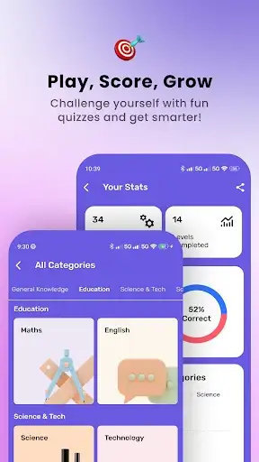 Just open the app, pick a category you love—like science, general knowledge, history, math, or even cricket—and jump into a quick, fun quiz game. Answer multiple-choice questions, beat the 15-second timer, and earn rewards as you go. Use smart lifelines when you're stuck, unlock new levels, and challenge yourself daily with fresh trivia packs. Whether you're learning or just passing time, this quiz app makes it fun to stay sharp and discover new facts every day.