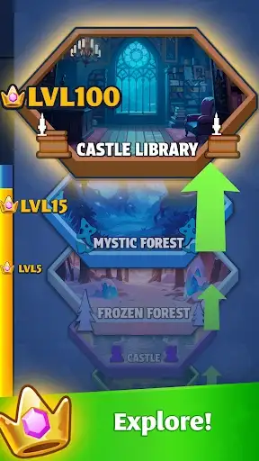 Strategic Spellcasting: match 5+ same-colored tiles to activate spells. Each color triggers a unique magical effect, adding tactical variety to every game.