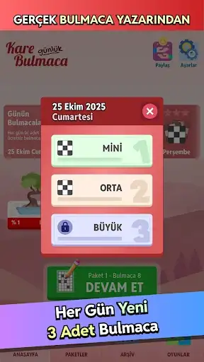 + Paket bulmacalardan ayrı olarak her gün 3 tane yeni bulmaca!