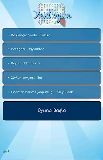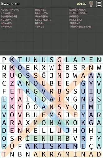 * Kelimeler: Geleneksel playmode. Sadece mümkün olan en kısa sürede listeden tüm kelimeleri bulmak.