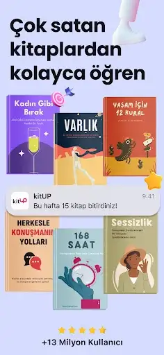 2000'den fazla kitap özeti ve 20'den fazla kategoriyle KitUP, hem kişisel hem de profesyonel gelişiminizi destekler. Özellikle yoğun tempoda çalışanlar, sürekli öğrenmeye açık bireyler ve zamanını verimli kullanmak isteyenler için ideal bir çözüm.