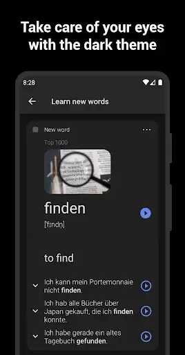 • Handy German flashcards with pictures and example sentences: helpful mental shortcuts to build your vocabulary and understand the nuances of word meaning and how these words are used in real practice.