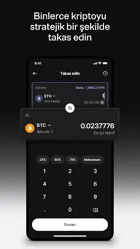 BTC, ETH, XRP, USDT, USDC, SOL ve daha fazlası* da dâhil olmak üzere binlerce coin ve token ile hangi işlemleri yapacağınıza siz karar verirsiniz. En popüler CEX ve DEX toplayıcılarından faydalanın. Dinamik dijital varlık dünyasında fırsatları keşfetmek ve riskleri etkin bir şekilde yönetmek için köprüler ve MEV koruması gibi gelişmiş özellikleri kullanın. Rekabetçi fiyatlar sunan, çeşitli güvenilir hizmet sağlayıcılar arasından seçiminizi yapın.
