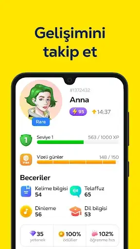 Her gün yeni İngilizce kelime öğrenme serüveninizde, İngilizce oyunlar, aralıklı tekrarlar, akıllı hatırlatıcılar ve akıllı çağrışımlar kelimeleri öğrenmenizi sağlarken, unutmamanıza da yardımcı olacak.