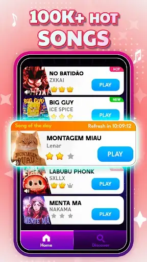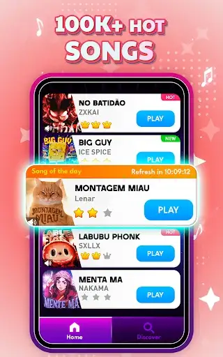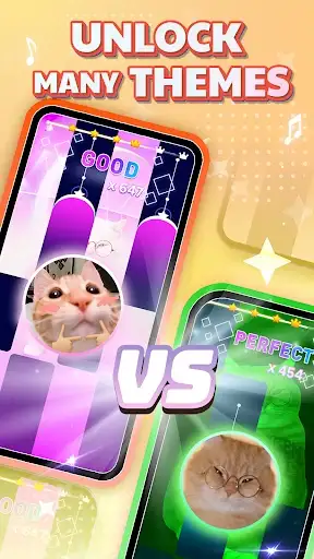 Simple to learn, exciting to master! Watch as colorful tiles cascade down your screen. Tap each tile in perfect time with the melody. Miss one and the music stops – keep your streak alive to unlock amazing rewards! Your adorable cat companion cheers you on with every perfect note.