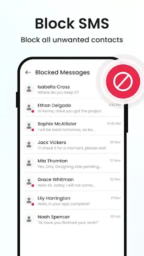 Say goodbye to spam! Block any contact who sends you annoying messages in Message: SMS, Text Messaging App.