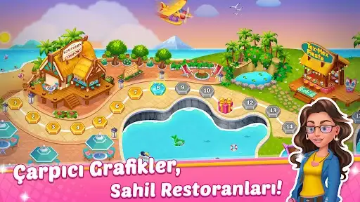 Yeni restoranların kilidini açmak için tüm seviyelerini tamamlayarak her restoranı tamamlayın. Her restoran yeni temalar, mutfaklar, zorluklar ve mutfak lezzetleri sunar