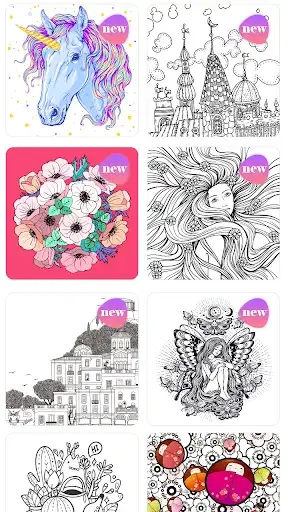 💎 Farklı kategorilerde çok çeşitli boyama sayfaları sağlayın; çizgi film, anime, hayvanlar, arabalar, kalpler, çiçekler, tek boynuzlu at, mandala vb. boyayabilirsiniz.