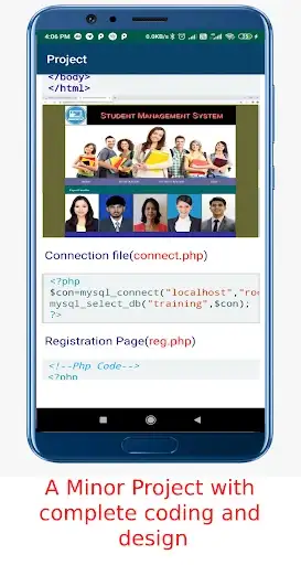 4.MINOR PROJECT: A sample minor project (STUDENT MANAGEMENT SYSTEM) is given in this application with full design ,screenshot and coding.