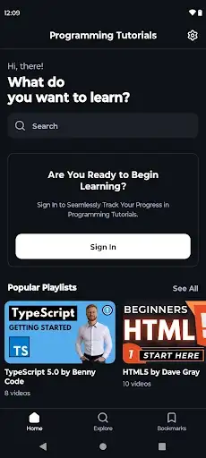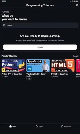 4. Curated Playlists: Learn step-by-step with fantastic playlists for each programming language.