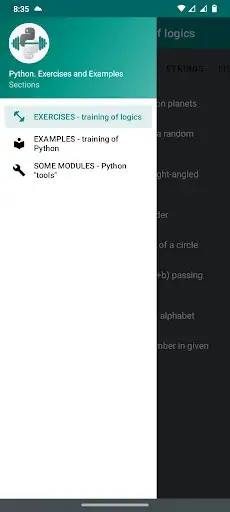 Sections: linear algorithms, conditions, cycles, strings, lists, dictionaries, functions, files.