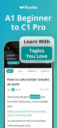 Bugün indir ve Readle ile Fransızca'yı hızlı ve kolayca öğren!