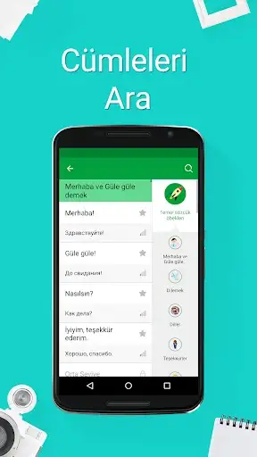 Rusça Öğrenme uygulaması sayesinde, artık bir yandan kusursuz şekilde eğlenirken, öte yandan da 5.000’den fazla Rusça cümle keşfedebilirsiniz! İster Rusça konuşulan bir ülkede tatil yapan bir turist olun, isterseniz de sadece yabancı dil konuşmak isteyen biri olun, bu uygulama Rusça hızlı, kolay ve eğlenceli bir yolla öğrenmenize yardımcı olacaktır.