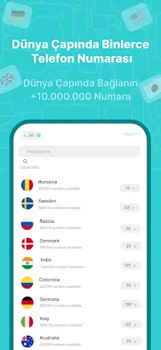 2. Numara Alın: Sanal numaranın fiyatını görün ve etkinleştirin (gerekirse kredi ekleyin).