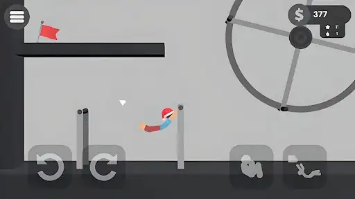 1) Thanks to the very realistic physics of the rag doll, the player controls the stick man with a joystick to move and cling to the horizontal bars.