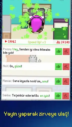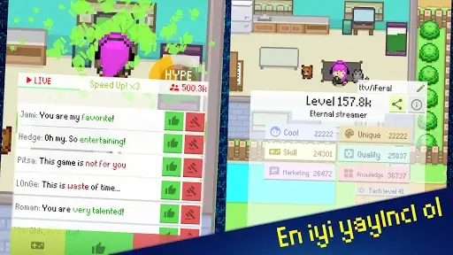 Şimdi oynamaya başlayarak ünlü bir yayıncının popülerliğini deneyimle. Hayalindeki işe başla, karakterini ve kurulumunu düzenle, farklı oyunlarda ustalaş, sponsorlar ve hayran ürünleriyle para kazan, farklı olayların içinde yer al, daha iyi bilgisayar kurulumu, hatta evcil hayvan bile satın al, sıralamada mücadele et ve başarımları aç. Şimdi bu benzersiz ve ücretsiz yayıncılık simülatöründe yayıncılığın zirvesine yükselme zamanı geldi!