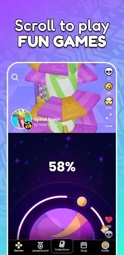 Scroll through hyper-casual games like videos. Swipe up for your next game, swipe down to replay. Discover hundreds of fun titles in seconds!