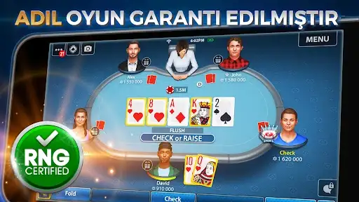 ADİL OYUN GARANTİLİ: Güvenli oyun ortamımızda içiniz rahat bir şekilde poker oynayın. Adil oyunu garantilemek ve verilerinizi korumak için gelişmiş algoritmalar ve güvenlik önlemleri kullanıyoruz, böylece endişelenmeden poker oyunlarınızın keyfini çıkarmaya yoğunlaşabilirsiniz.