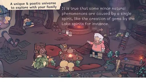 In Omu's hut, you can choose the type of story you’d like to experience today: a chronicle - a short story about a particular spirit - or a tale where you step into Omu’s shoes and explore the Earth, its countless natural wonders and, of course, its spirits!