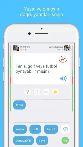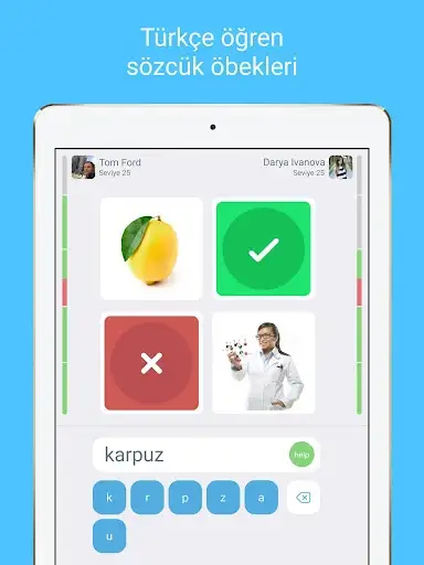 Online oynamak da türkçe kelime bilgisi sınamak için en iyi yollarından biridir. Arkadaşlarınızla veya diğer oyuncularla ikili modda oynayın. Uygulama egzersizleri yapmak ve testler almak, ya da sadece yanlış kazanılmış çalışma sağlayan faydalı fonksiyonlara sahiptir. Ayrıca, Yeni Başlayanlar türkçe dersini atlayabilir ve daha fazla türkçe derslere geçebilirsiniz.