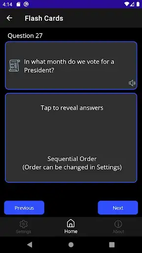 Use this app to learn the answers for all the questions and actually practice the USCIS Citizenship Civics Test. Features flash cards for all 100 questions. View them in a random order, or the order presented in the USCIS documentation. Take a practice test and see if you can score well enough to pass the actual Interview Test. Also includes audio for all questions and answers so you can hear the questions read aloud as you study.