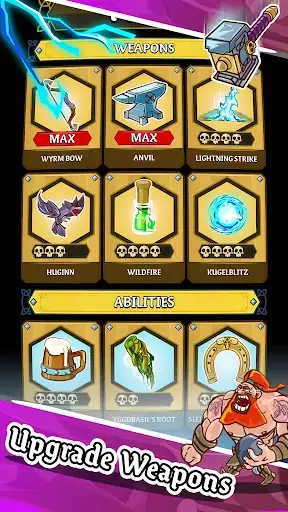 Level up your Viking helmets, armour, battles axes, sword, bows and war hammers on your restless journey through the lands of Niflheim, Jotunheim and Muspelheim.