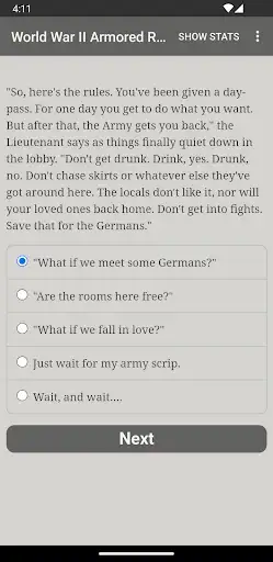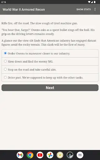 "World War II Armored Recon" is an interactive novel of approximately 900,000 words by Allen Gies, the lead writer for "Burden of Command." It's entirely text-based, without graphics or sound effects, and fueled by the vast, unstoppable power of your imagination.