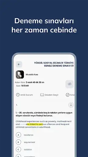 6. Uygulama ile deneme sınavlarına kayıt yaptırabilir ve sonrasında sınavı uygulama üzerinde rahatlıkla çözebilir ve video çözümü olan sınavların istediğiniz yerde istediğiniz zaman izleyebilirsiniz.