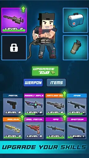 You will play the role of a survivor, using guns and weapons to shoot down the zombie enemies coming to you. All you have to do is kill all the walking dead and finish different challenges to complete the process to the safe zone. You will be using guns with different ammo, grenades or melee weapons to finish them off. Meanwhile, you will be able to heal yourself with items that you can buy randomly after completing a challenge. As you complete more and more quests, your character will become stronger with better equipment, enhanced skills and gained perks.